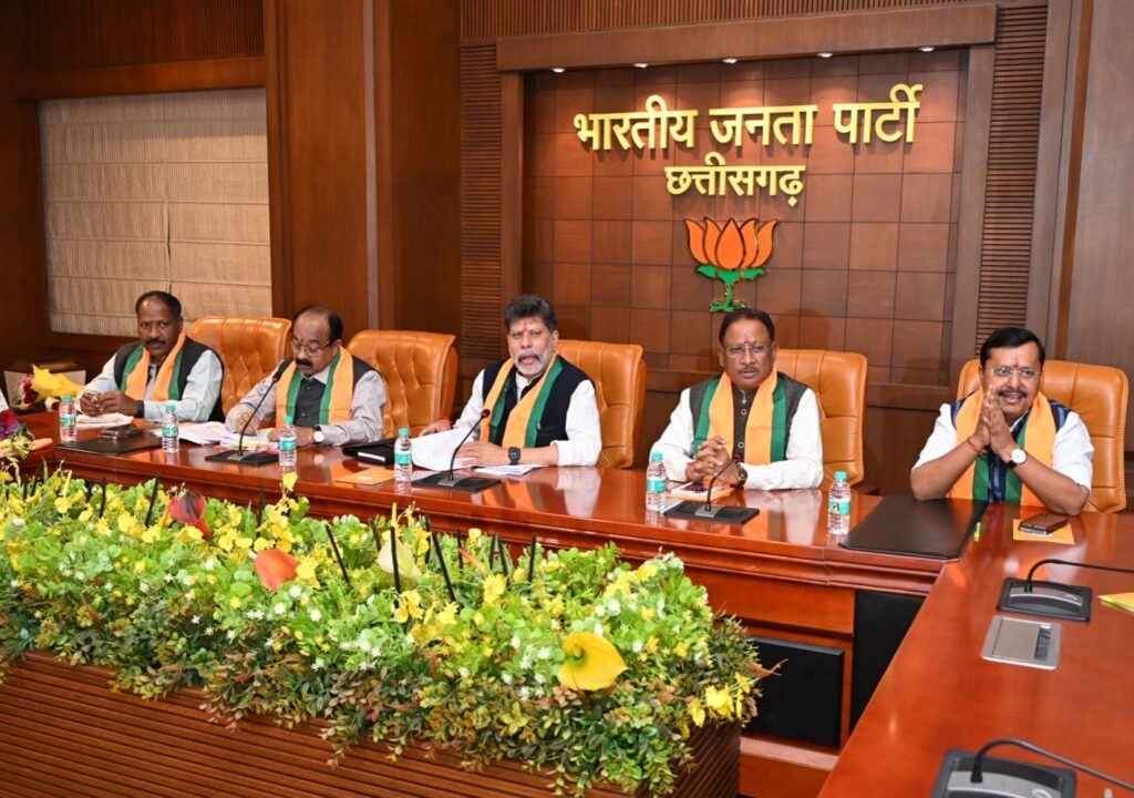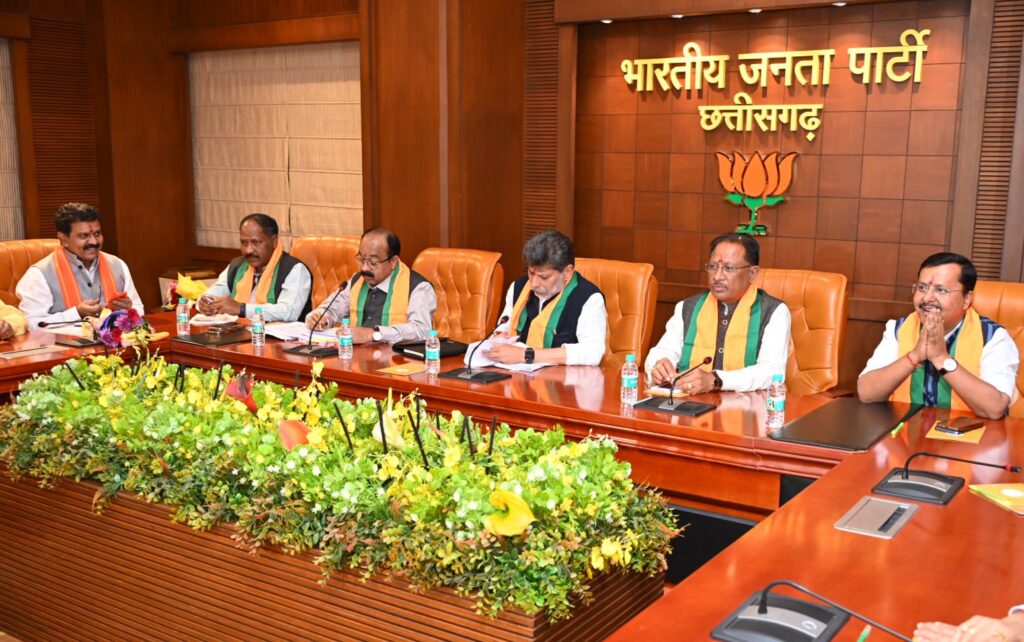 रायपुर. छत्तीसगढ़ में नगरीय निकाय चुनाव को लेकर बीजेपी प्रदेश कार्यालय में भाजपा कोर कमेटी, मंत्रिमंडल व महामंत्रियों की बैठक शुरू हो गई है. भाजपा प्रदेश प्रभारी नितिन नवीन और CM विष्णुदेव साय की अध्यक्षता में बैठक हाे रही, जिसमें निकाय और पंचायत चुनाव के मुद्दे तय किए जाएंगे.