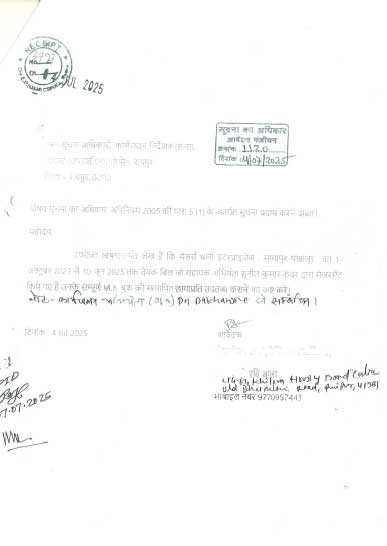 एक महीने बीत जाने के बाद उपलब्ध नही करवा पाया दस्तावेज। विभाग के अधिकारी ऐसा क्या कार्य नही किया जिसका मेजरमेंट बनाया जो उपलब्ध करवाने में हिचकिचा रहे है।