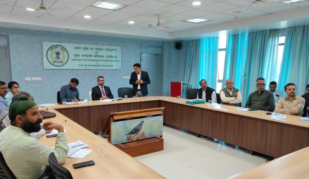 रायपुर। छत्तीसगढ़ वन विभाग के प्रधान मुख्य वन संरक्षक (वन्यजीव) एवं मुख्य वन्यजीव वार्डन अरुण कुमार पाण्डेय की अध्यक्षता में नवा रायपुर स्थित आरण्य भवन में विगत गुरुवार को महत्वपूर्ण बैठक आयोजित की गई. बैठक में वन भैंसा (वाइल्ड बफैलो) के संरक्षण, संख्या वृद्धि, स्थानांतरण और वन्यजीव प्रबंधन से जुड़े प्रमुख बिंदुओं पर विस्तृत चर्चा की गई.