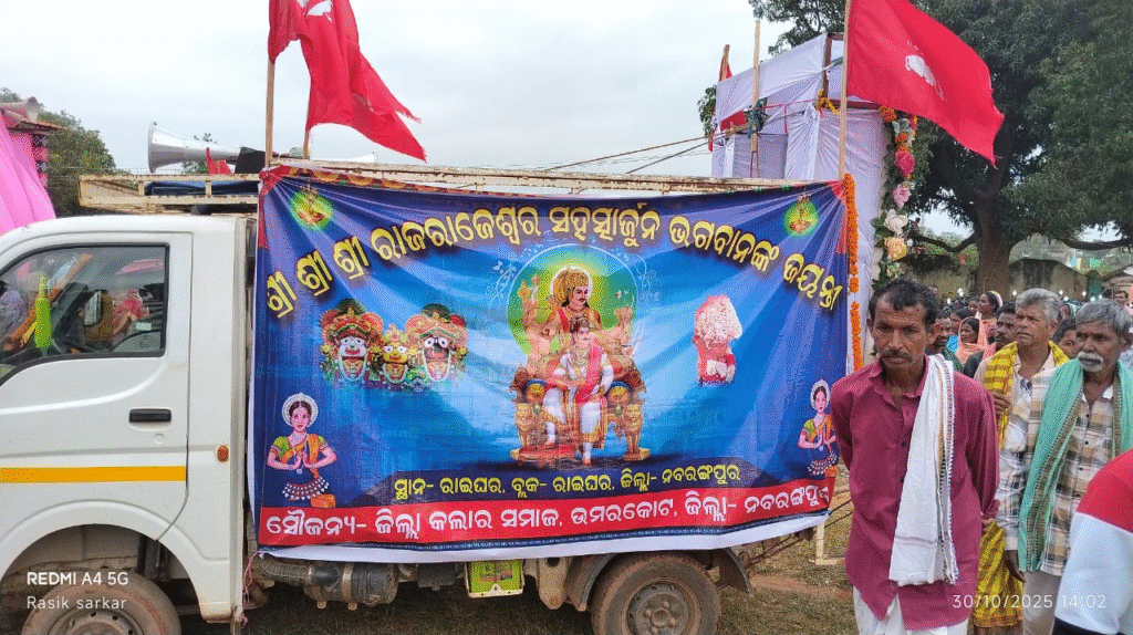 नबरंगपुर/रायघर, नबरंगपुर जिले के रायघर प्रखंड स्थित मिनी स्टेडियम परिसर में दिनांक 30/10/2025 को कलार समाज द्वारा श्री श्री श्री राजराजेश्वर सहस्रार्जुन भगवान की जयंती बड़े ही धूमधाम, धार्मिक आस्था तथा सांस्कृतिक गरिमा के साथ भव्य रूप से आयोजित की गई। प्रातःकालीन शोभायात्रा से लेकर संध्या सम्मान समारोह तक यह उत्सव सामाजिक एकता और संगठन का अनुपम उदाहरण बनकर सामने आया।
