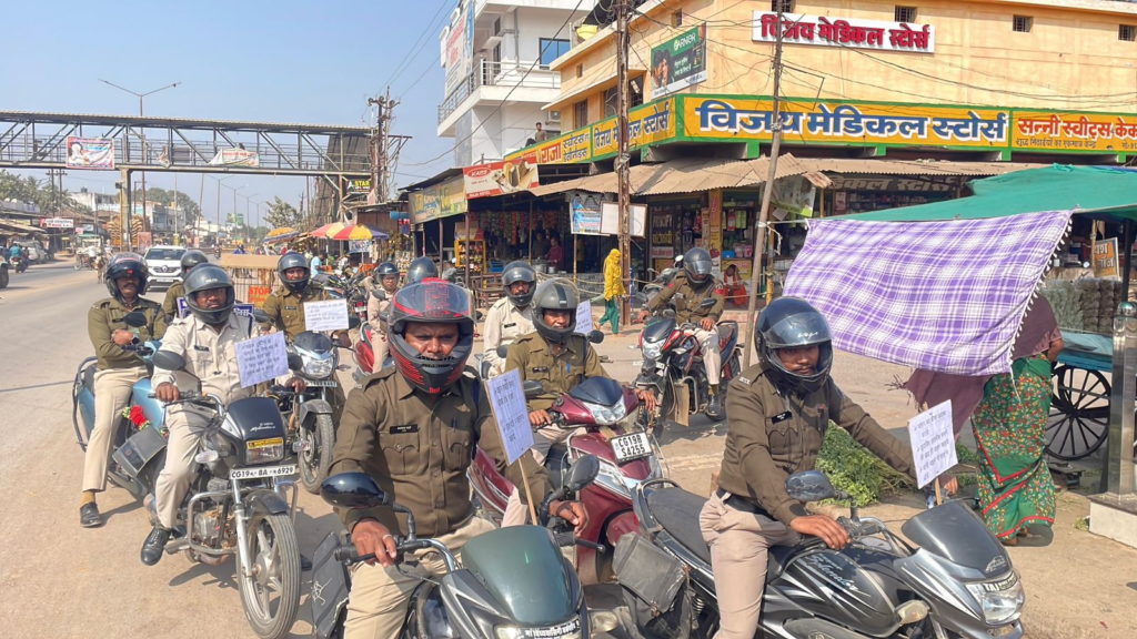 चारामा पुलिस द्वारा चारामा में यातायात जागरूकता रथ के साथ बाइक रैली निकाल कर दो पहिया एवं चार पहिया वाहन चालकों को यातायात नियम का पालन करने की समझाईष दिया गया एवं वाहन का बीमा अवष्यक रूप से अपील करते हुए ,वाहन चलाते समय आवष्यक रूप से हेलमेट एवं सीटबेल्ट पहन कर वाहन चलाने एवं दोपहिया वाहन में तीन सवारी नही बैठने समझाईष दिया गया , लोगों को यातायात नियमों की जानकारी देते हुए वाहन स्वामीयों को समझाईष दिया गया कि बिना ड्रायविंग लायसेंसी वाहन चालको को वाहन चलाने न दे एवं परिजनों से अपील किया गया कि नाबालिग बच्चों को वाहन चलाने न देने समझाईष दिया गया एवं वाहन चालन के समय मोबाईल फोन से बात नही करने सलाह देते हुए वाहन तेज गति से नही चलाने अपील किया गया ।